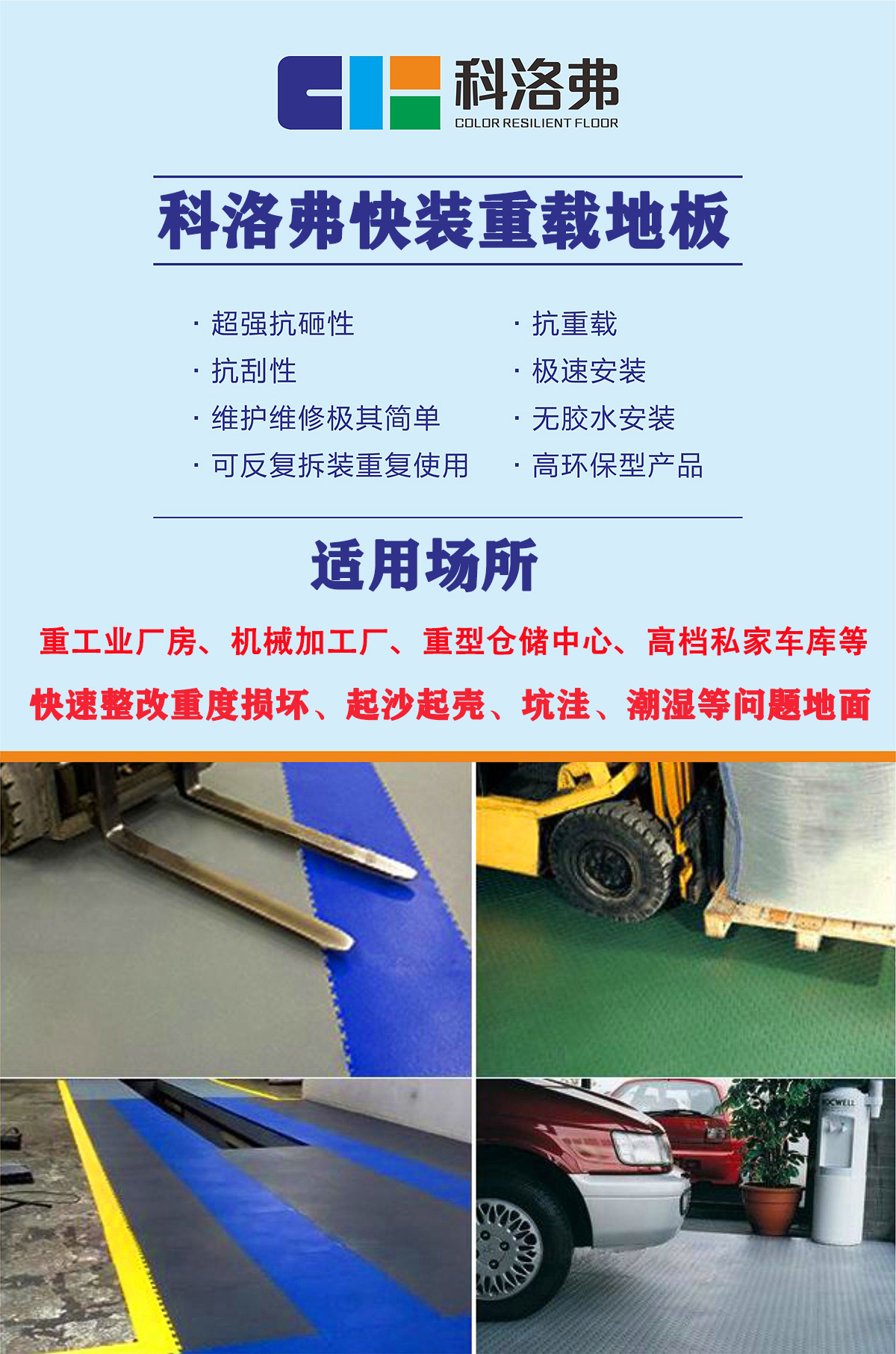 科洛弗快裝重載地板(爛地面問題地面、重工業廠房專用)